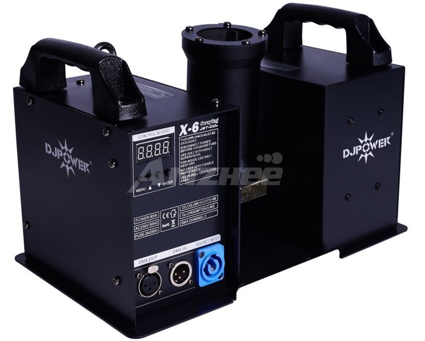Генератор СO2 DJ POWER X-6. Генератор СO2. Мощность: 80 Вт.; Дистанция выброса: 8 м.; Диапазон регулировки направленности сопла: 180°; Подсветки нет; Установка: Напольная. (AN-00-00000169)