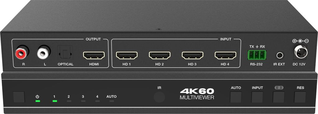 Digis SS-MV41-2 — профессиональный презентационный коммутатор 4x1 с функцией мультивьювера, рассчитанный на одновременную работу с несколькими HDMI-источниками в переговорных, учебных аудиториях, диспетчерских и AV-инсталляциях. Модель поддерживает видео до 4K 60 Гц 4:4:4 с пропускной способностью 18 Гбит/с, поэтому подходит для вывода детализированного контента без потери качества. Бесподрывное переключение делает смену источников более аккуратной и комфортной для зрителя, что особенно важно в презентационных сценариях и при постоянной работе с разными входами.