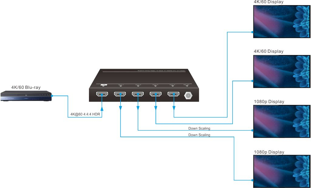 Поддержка разрешения до 4K при 60 Гц и цветовой субдискретизации 4:4:4 позволяет передавать детализированное и четкое изображение с корректной цветопередачей. Благодаря соответствию стандарту HDMI 2.0 с пропускной способностью до 18 Гбит/с распределитель совместим с современными источниками сигнала и дисплеями высокой четкости. Это делает модель актуальной для работы с презентационным, рекламным и профессиональным AV-контентом.