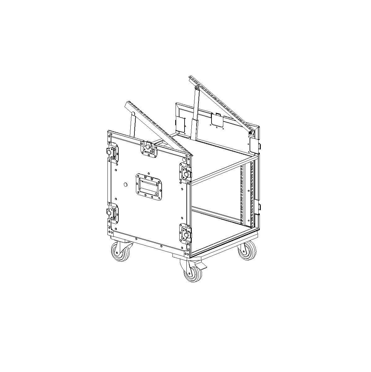 Рэковый кейс 8U с верхней консолью 10U, глубина 480мм, DIN рейка с 2-х сторон, ламинированная фанера 9мм, с колесами d100мм, 2-а колеса с тормозом.