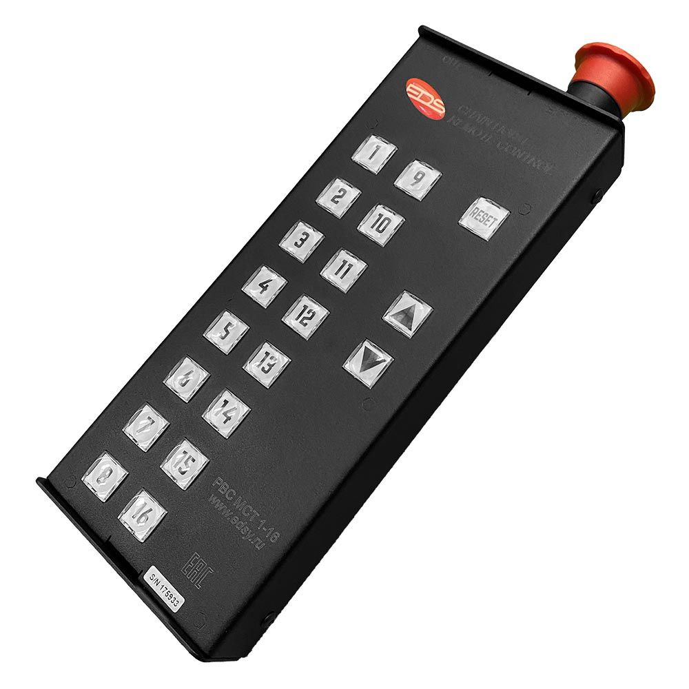 EDS PBC MCT 1-16WT — беспроводной выносной пульт для управления мотор-контроллерами серии PB MCR от EDS. Он рассчитан на управление до 16 каналами и позволяет работать на безопасной дистанции от зоны подъёма/перемещения конструкций.