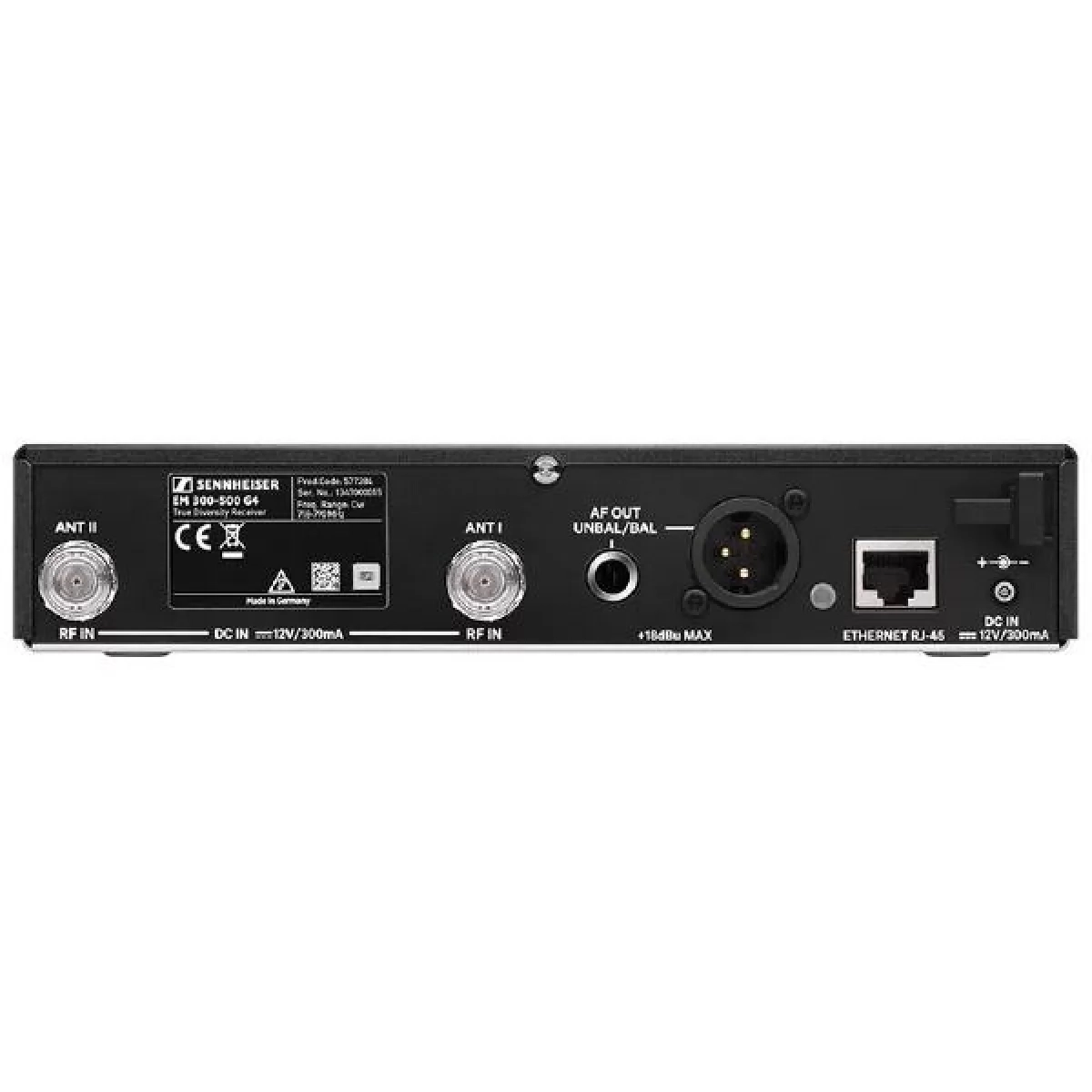 В комплект входит ручной передатчик SKM 500 G4 с динамическим кардиоидным капсюлем MMD 935-1, который хорошо выделяет голос в миксе и помогает контролировать обратную связь за счёт направленности. Приёмник EM 300-500 G4 с технологией True Diversity повышает устойчивость радиоканала при активном движении артиста.
