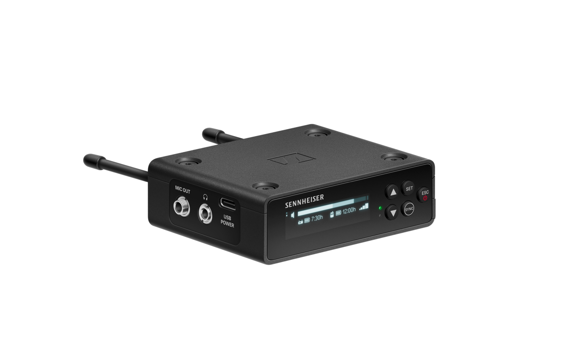 Приёмник поддерживает Bluetooth Low Energy, что упрощает синхронизацию и управление через приложение Sennheiser Smart Assist, включая частотное сканирование, мониторинг состояния батареи и быстрые настройки.Компактный корпус удобно крепится на камеру или пояс оператора, а индикация оставшегося заряда позволяет контролировать время работы на выезде.