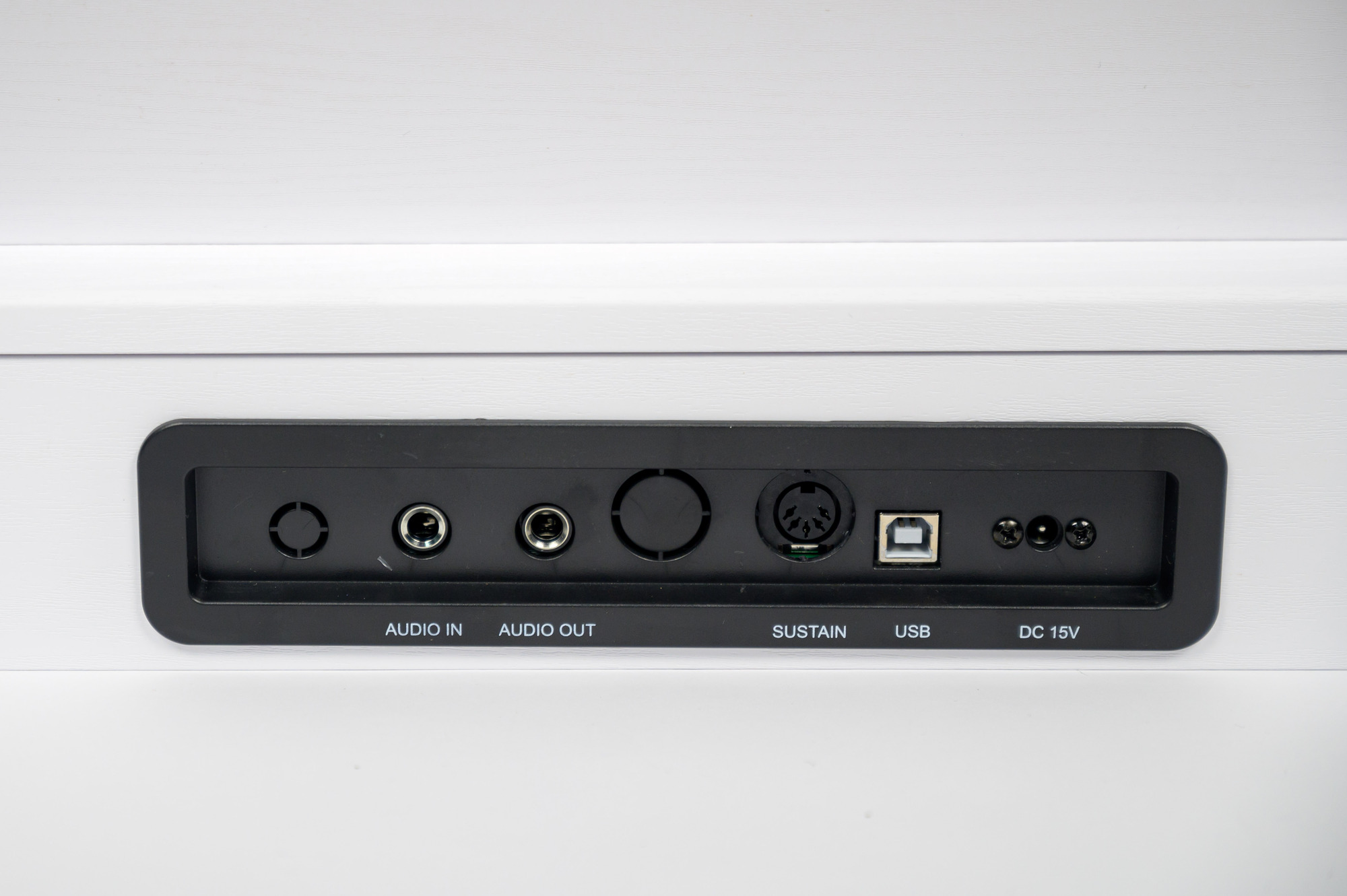 Фортепиано оснащено только самыми необходимыми – транспонирование, разделение клавиатуры для возможности занятий вместе с преподавателем в одной тональности и наложение двух тембров для творчества.