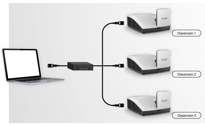 Проектор легко интегрируется в образовательную и корпоративную инфраструктуру благодаря поддержке сетевого управления (Crestron, AMX, PJ‑Link) и централизованной диагностики через BenQ DMS, что упрощает обслуживание и настройку большого количества устройств.