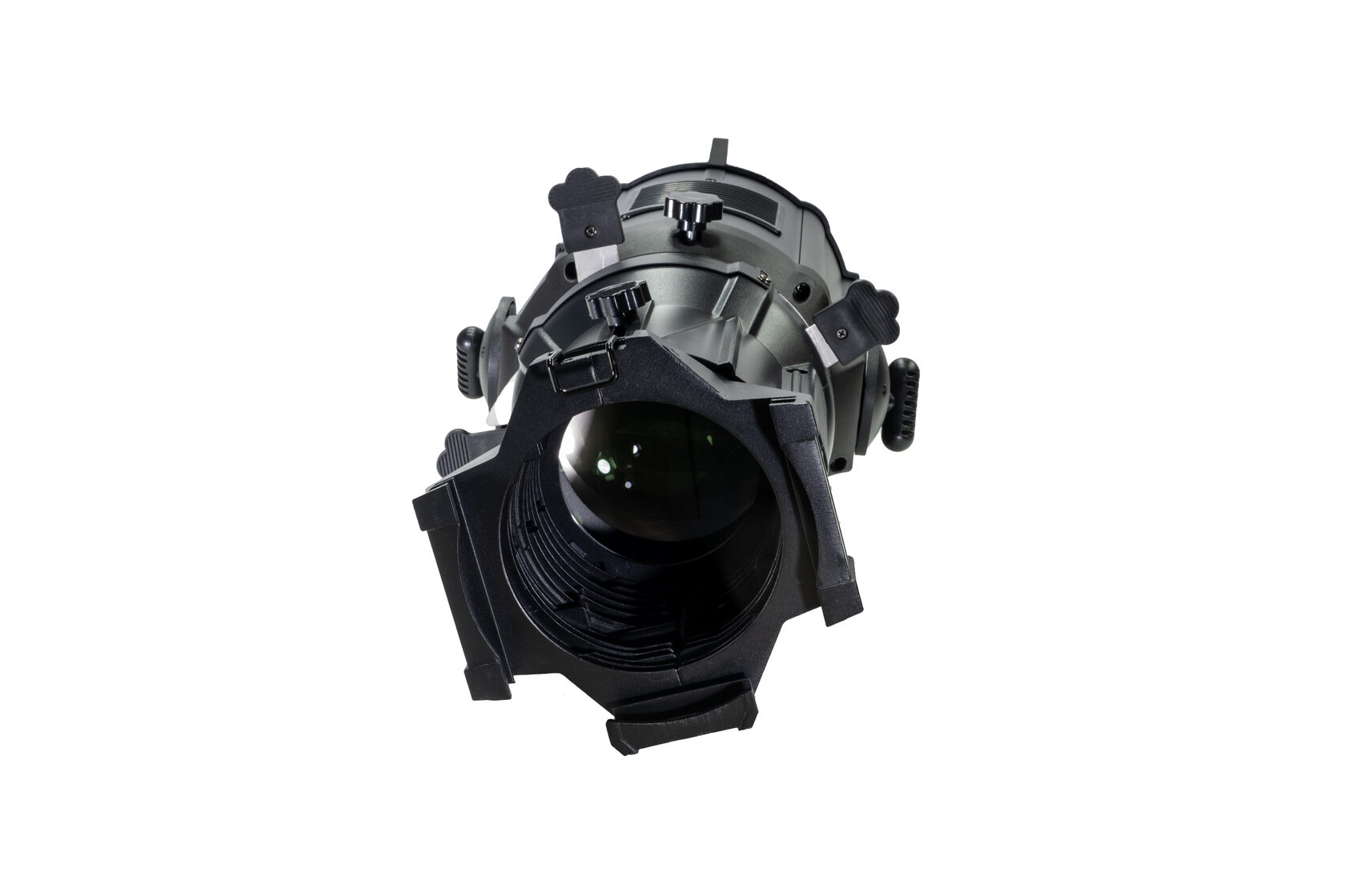 В режиме цветовой температуры прожектор обеспечивает индекс цветопередачи CRI 95, благодаря чему подходит для задач, где важна корректная передача кожи, костюмов и декораций. Фиксированная оптика 19°/26°/36°/50° доступна опционально, а система профилирования с 4 независимыми лезвиями и поворотом 30° позволяет точно формировать границы светового пятна.