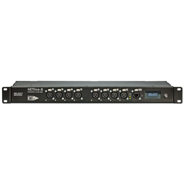 ИМЛАЙТ NETline-8-5pin — рэковый преобразователь сигнала для систем управления сценическим светом, рассчитанный на интеграцию сетевых протоколов в DMX-инфраструктуру. Модель предназначена для преобразования сигналов ArtNet или sACN в DMX512-A и ориентирована на инсталляции, где важны стабильная передача данных, удобство маршрутизации и аккуратное встраивание в 19-дюймовую стойку. Формат с восемью портами делает устройство практичным решением для театров, концертных площадок, прокатных комплектов и сложных стационарных систем управления светом.