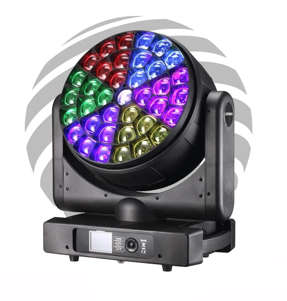 SHADOW AURORA — мощный светодиодный вращающийся прожектор типа Wash / Bee-Eye для масштабных концертных, клубных и сценических световых шоу. Прибор оснащён 37 RGBW-светодиодами по 40 Вт и позволяет создавать яркую заливку, динамичные лучевые эффекты, пиксельные сцены и выразительные визуальные рисунки.