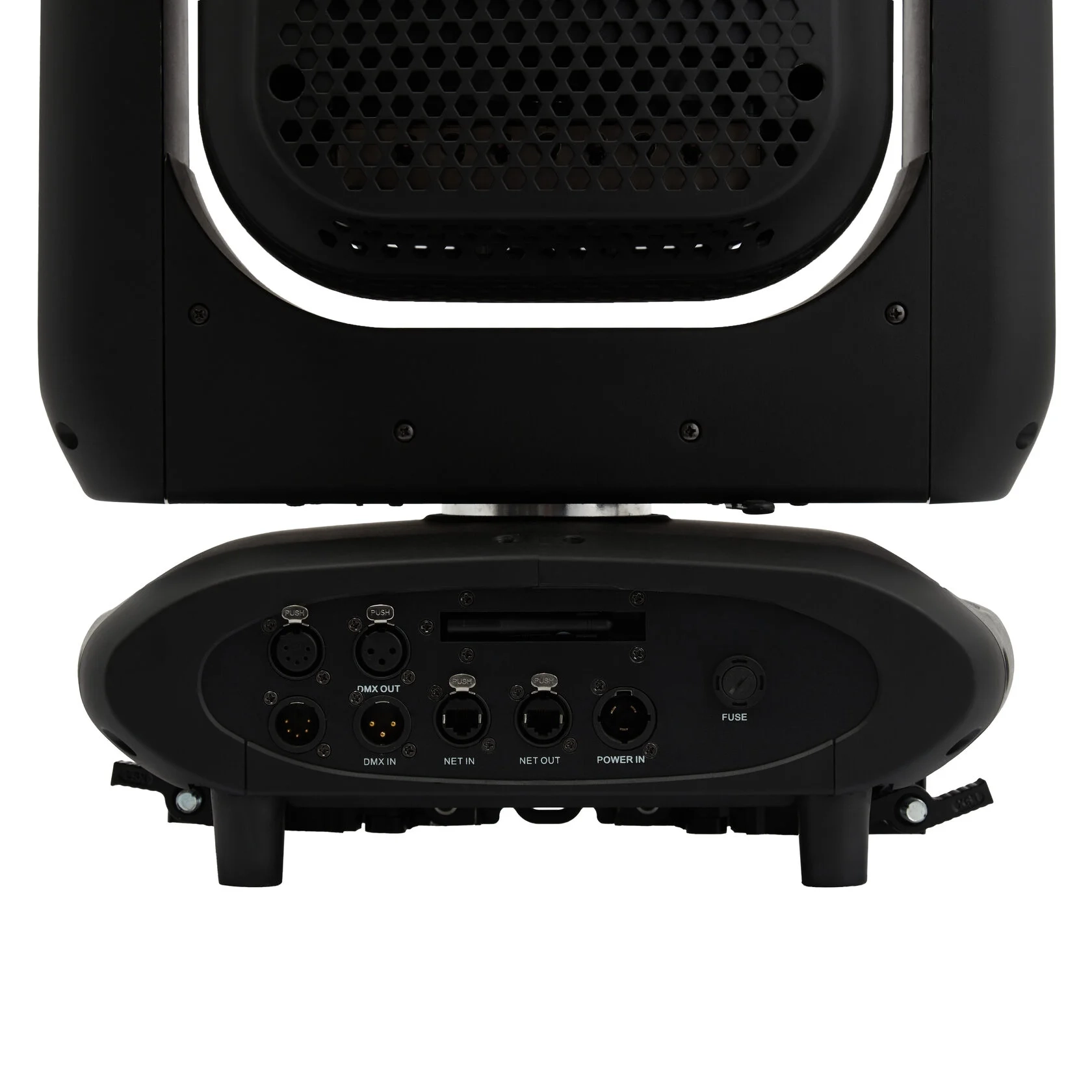 Моторизованный зум 4,5°–50° позволяет использовать прибор как для узких лучевых эффектов, так и для широкой заливки, а моторизованный фокус помогает точно настроить резкость проекции. Цветовая система CMY + CTO, колесо на 6 цветов с открытым белым и линейная коррекция CTO дают широкие возможности для подбора оттенков и адаптации света под разные сценические задачи.
