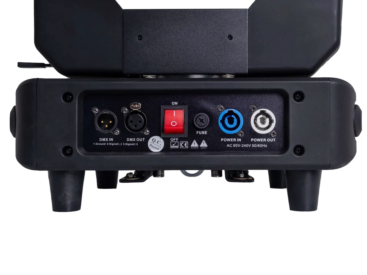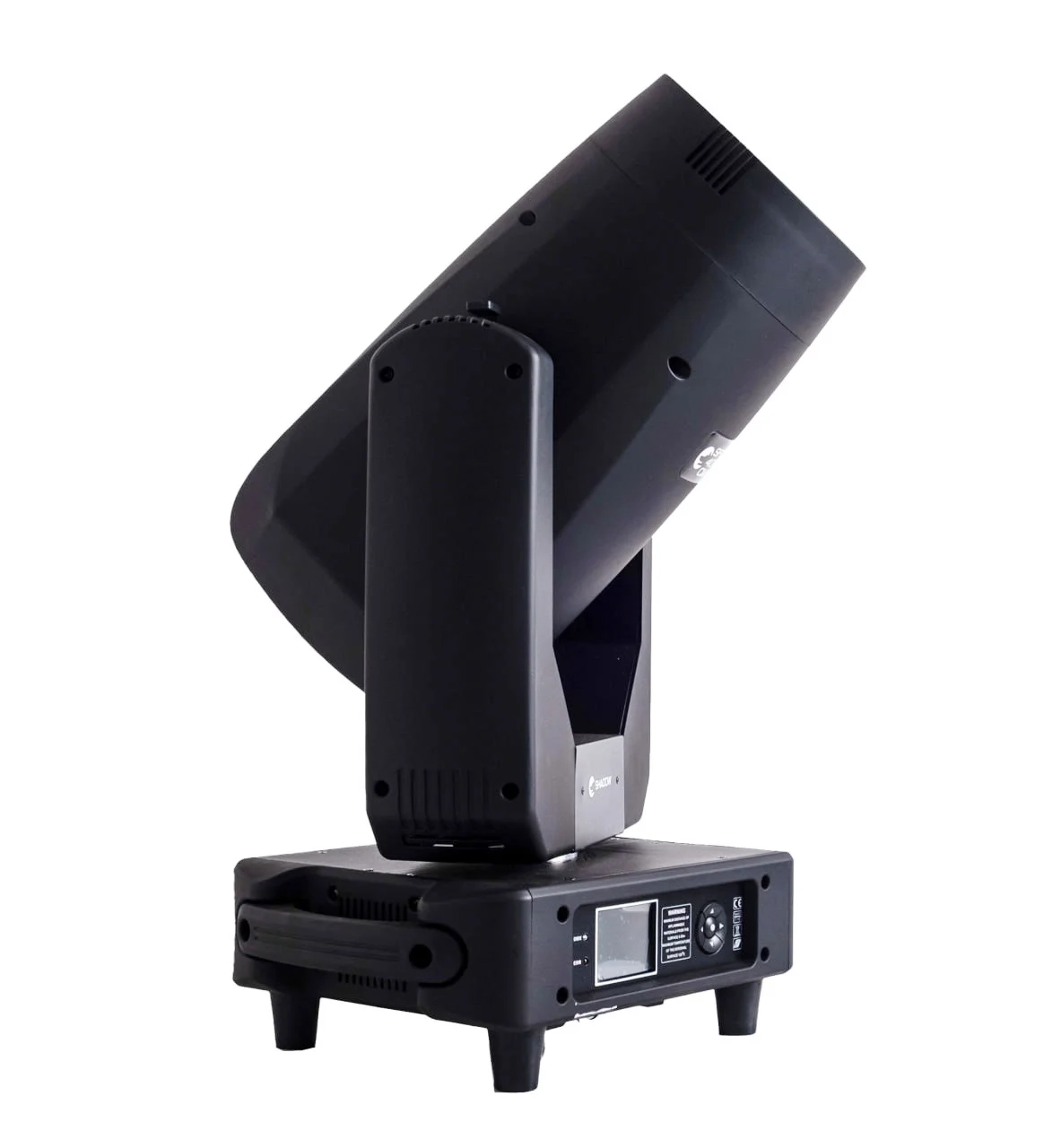Оптика с моторизованным зумом позволяет использовать прибор и как акцентный spot с диапазоном 4°–35°, и как более широкую wash-заливку 10°–50°. В арсенале эффектов — 11 статичных гобо, 7 вращающихся гобо, независимый моторизованный frost и сразу две призмы: 8-фасетная круглая и 6-фасетная линейная, которые можно комбинировать между собой. Это делает модель удобной для концертных площадок, прокатных комплектов, клубных инсталляций и сцен, где нужен один универсальный прибор вместо нескольких специализированных.