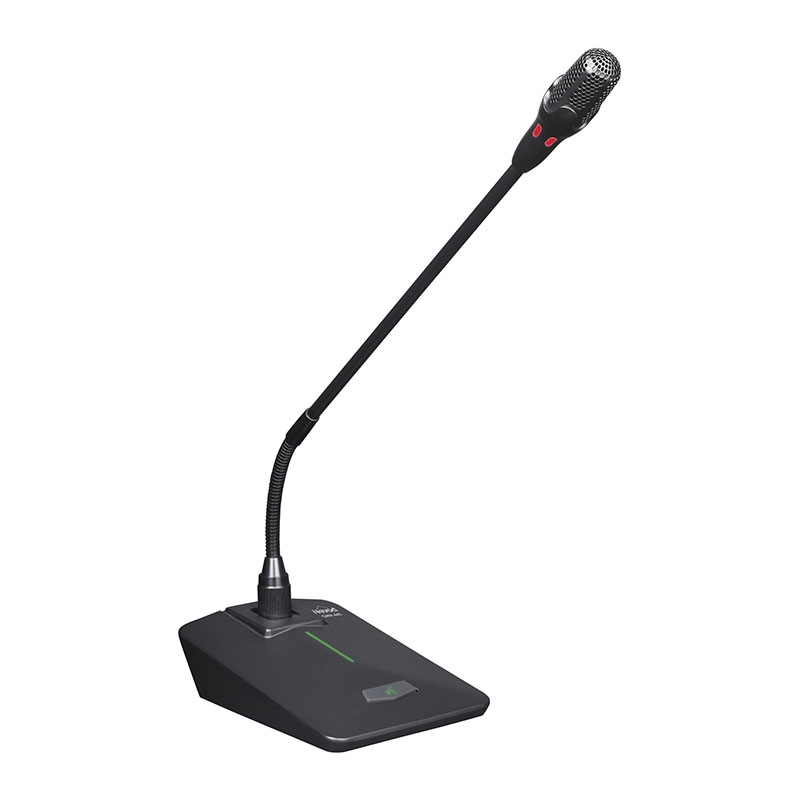 Микрофон оснащён световой индикацией состояния на корпусе, что удобно для операторов, администраторов и участников переговоров. Балансный выход через XLR делает модель совместимой с профессиональными микшерами, усилителями и трансляционными системами. Дополнительно заявлена защита от электромагнитных помех, включая наводки от мобильных устройств, что особенно полезно в переговорных и диспетчерских зонах.