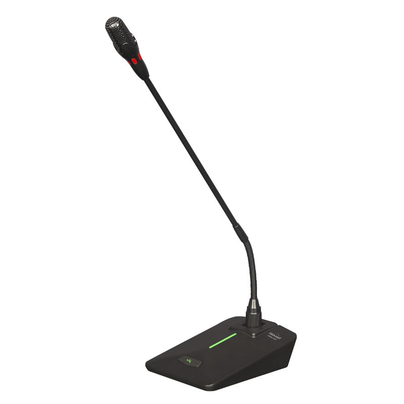 NEVOD CMN-445 — настольный конденсаторный микрофон на гибкой шее, рассчитанный на системы речевого оповещения, музыкальной трансляции и небольшие конференц-инсталляции. Кардиоидная направленность помогает точнее захватывать голос выступающего и уменьшать влияние посторонних звуков в помещении. Модель ориентирована на стационарное использование там, где важны разборчивость речи, удобство включения и аккуратный внешний вид.