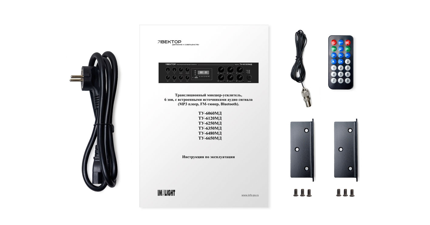 ВЕКТОР ТУ-6060МД (V2) — шестизональный трансляционный микшер-усилитель класса D мощностью 60 Вт, рассчитанный на музыкальную трансляцию и речевые сообщения в объектах с несколькими независимыми зонами. Модель подходит для магазинов, офисов, кафе, учебных заведений и административных помещений, где важно централизованно распределять звук по разным участкам. В актуальных каталогах устройство обозначается как ТУ-6060МД (V2), при этом официальное руководство производителя публикуется для модели ТУ-6060МД серии ТУ-6xxМД.