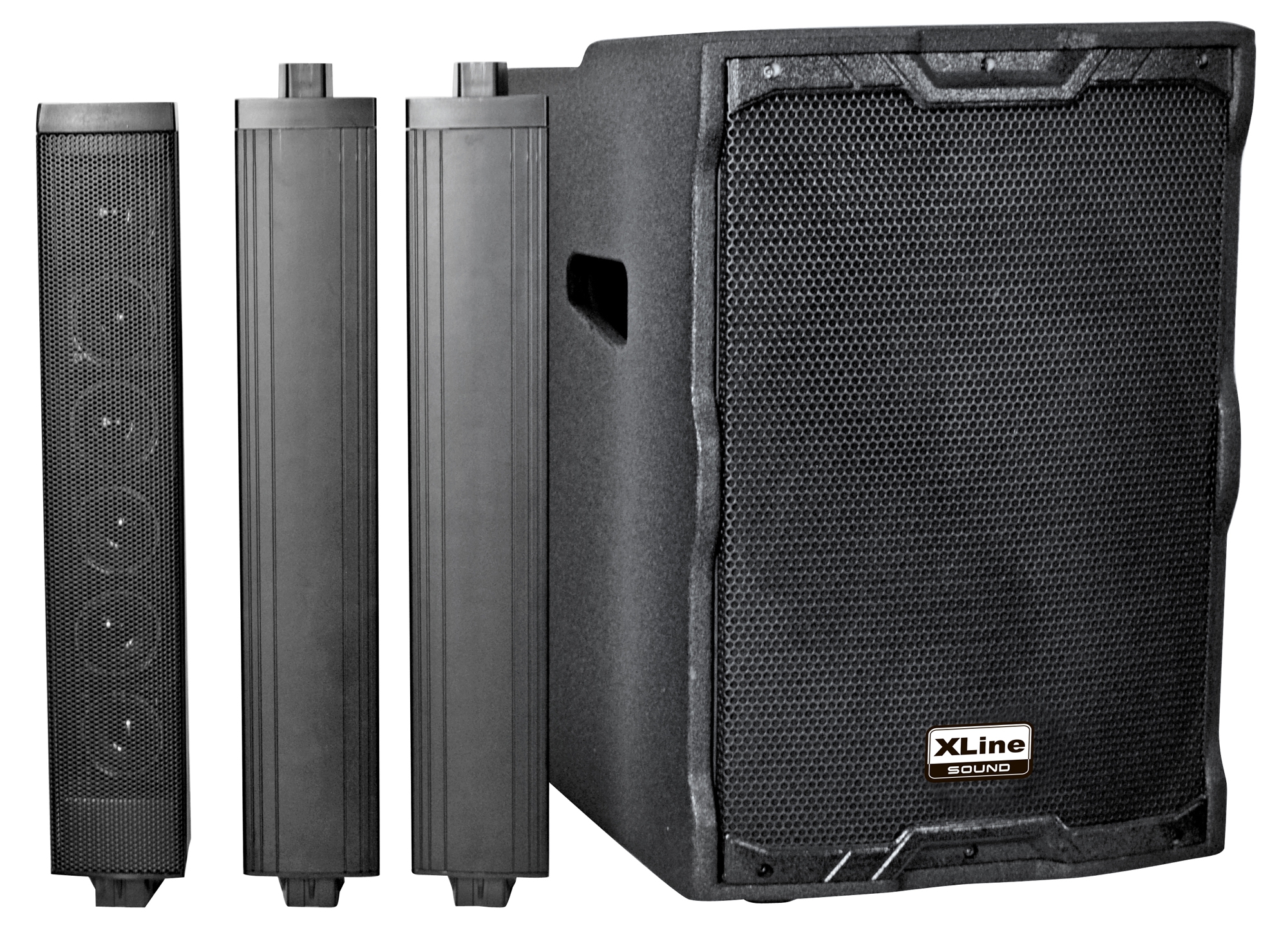 Портативный акустический комплект XLine BETA CL-10 состоит из активного саба с 10" динамиком и пассивной ВЧ разборной акустической системы колонного типа с шестью 2" драйверами.