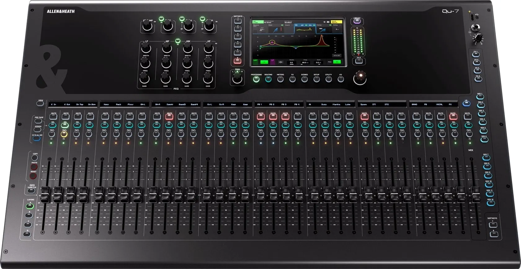 Отдельное преимущество модели — сочетание классического форм-фактора с современными функциями автоматизации, сценами, пользовательскими слоями и быстрым доступом к ключевым параметрам. QU-7D подходит для тех, кому нужен цифровой микшер с серьёзным запасом по коммутации, стабильной сетевой интеграцией Dante и понятным управлением в реальных рабочих условиях.