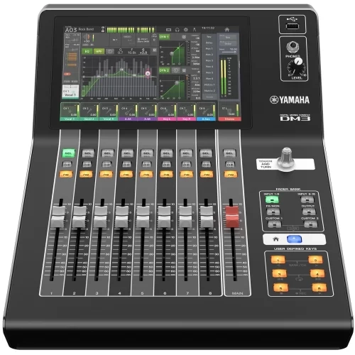 Yamaha DM3 — это компактная цифровая микшерная консоль профессионального класса с поддержкой Dante, рассчитанная на концертные площадки, стриминг, подкасты, студийную работу и инсталляционные проекты. Модель предлагает обработку сигнала с частотой дискретизации до 96 кГц и сочетает небольшие габариты с возможностями, которые обычно ожидают от более крупного цифрового пульта. За счёт понятной архитектуры управления, 9-дюймового сенсорного экрана и моторизованных фейдеров консоль хорошо подходит как для мобильных сетапов, так и для постоянных инсталляций.