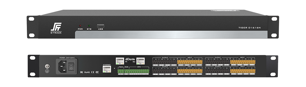 S-Track TIGER D1212N DSP — профессиональная аудиоматрица и цифровой аудиопроцессор для инсталляционных систем, где нужны гибкая маршрутизация, DSP-обработка и передача звука по сети Dante. Модель оснащена 12 аналоговыми входами, 12 аналоговыми выходами и встроенным сетевым модулем Dante 12×12, поэтому хорошо подходит для конференц-залов, учебных аудиторий, переговорных, судебных помещений и многофункциональных AV-комплексов.