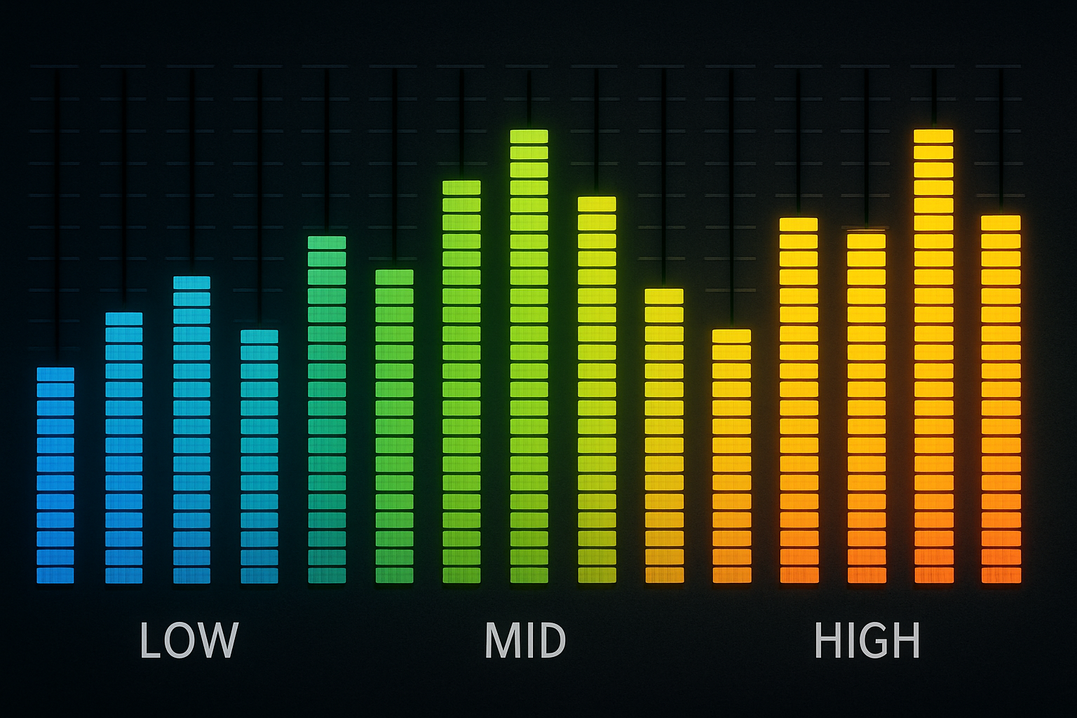 Эквалайзер (EQ) управляет амплитудой определённых частот. Он может усиливать низкие басы, подчеркивать средние частоты для ясности вокала или смягчать яркость верхнего диапазона. Понимание диапазонов — основа успешной настройки.