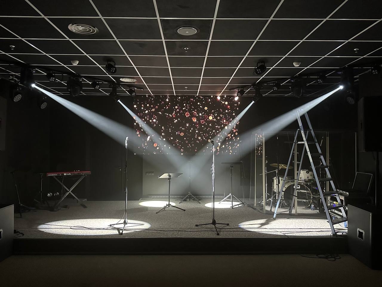 красивый, неслепящий свет с акцентом на сцене,